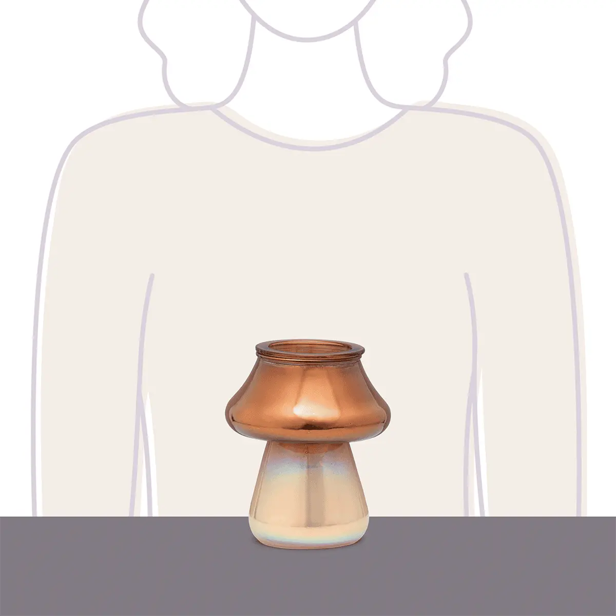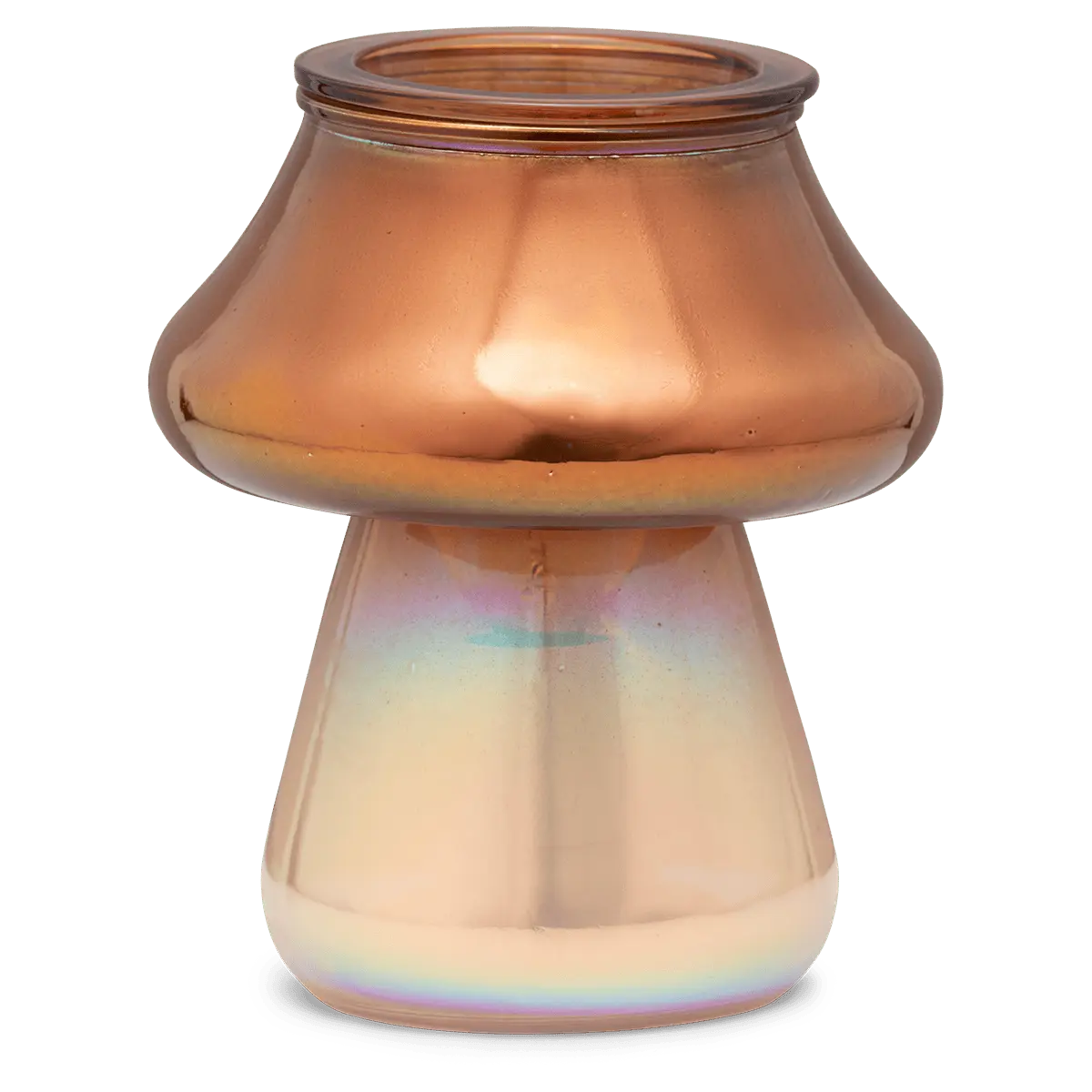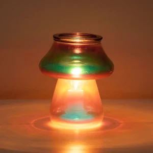 Transforming from a bronze ombre to a multicolored shine when lit, this eye-catching mushroom is sure to be a bright spot in your décor.