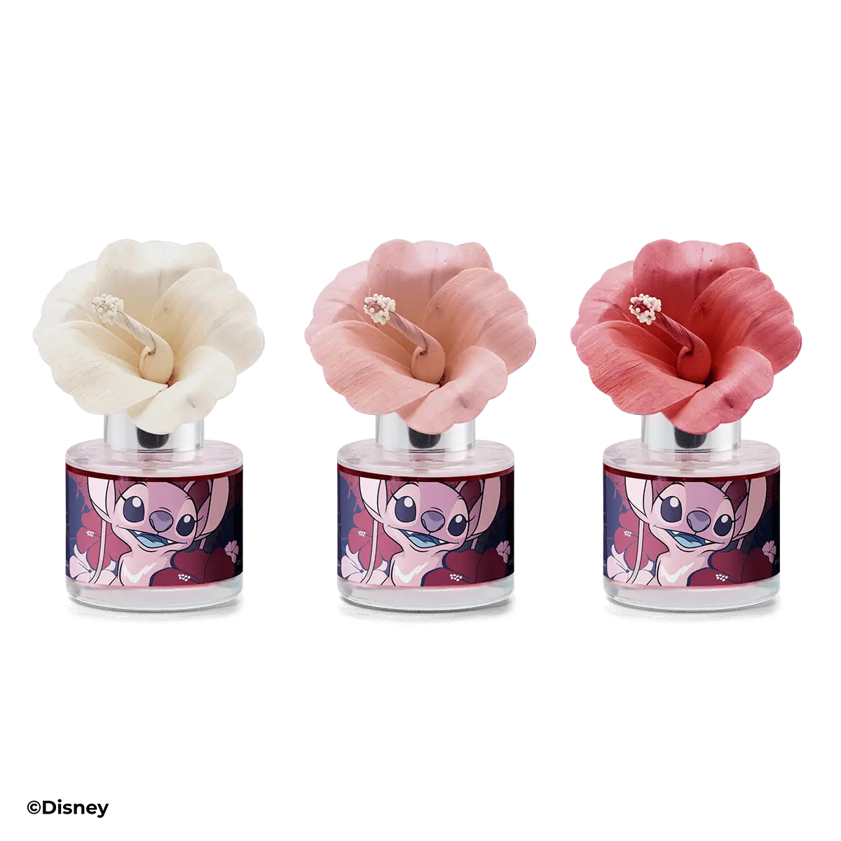 Colour blossoms from the centre of Hibiscus Fragrance Flower as it releases our Disney Angel: Experiment 624 fragrance, gradually turning the petals a beautiful pink.Our elegant Fragrance Flower releases beautiful scent while looking lovely in any space. Just set it out and enjoy — no plug, no problem.Angel: Experiment 624 — A unique creation like Disney’s Angel calls for a complex concoction. This mischievous mix draws you in like a siren song with a blend of goji berry and blackberry reacting just so with sweet vanilla cream and sugarcane.
