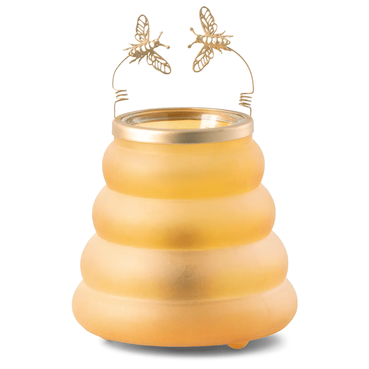Could it BEE any cuter? A playful decorative lid is the finishing touch on a honey-colored frosted glass Warmer. It’s as sweet as the golden goodness it represents.