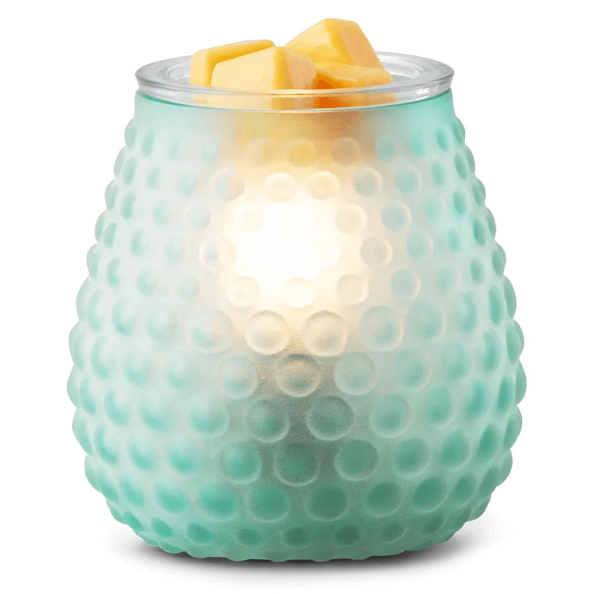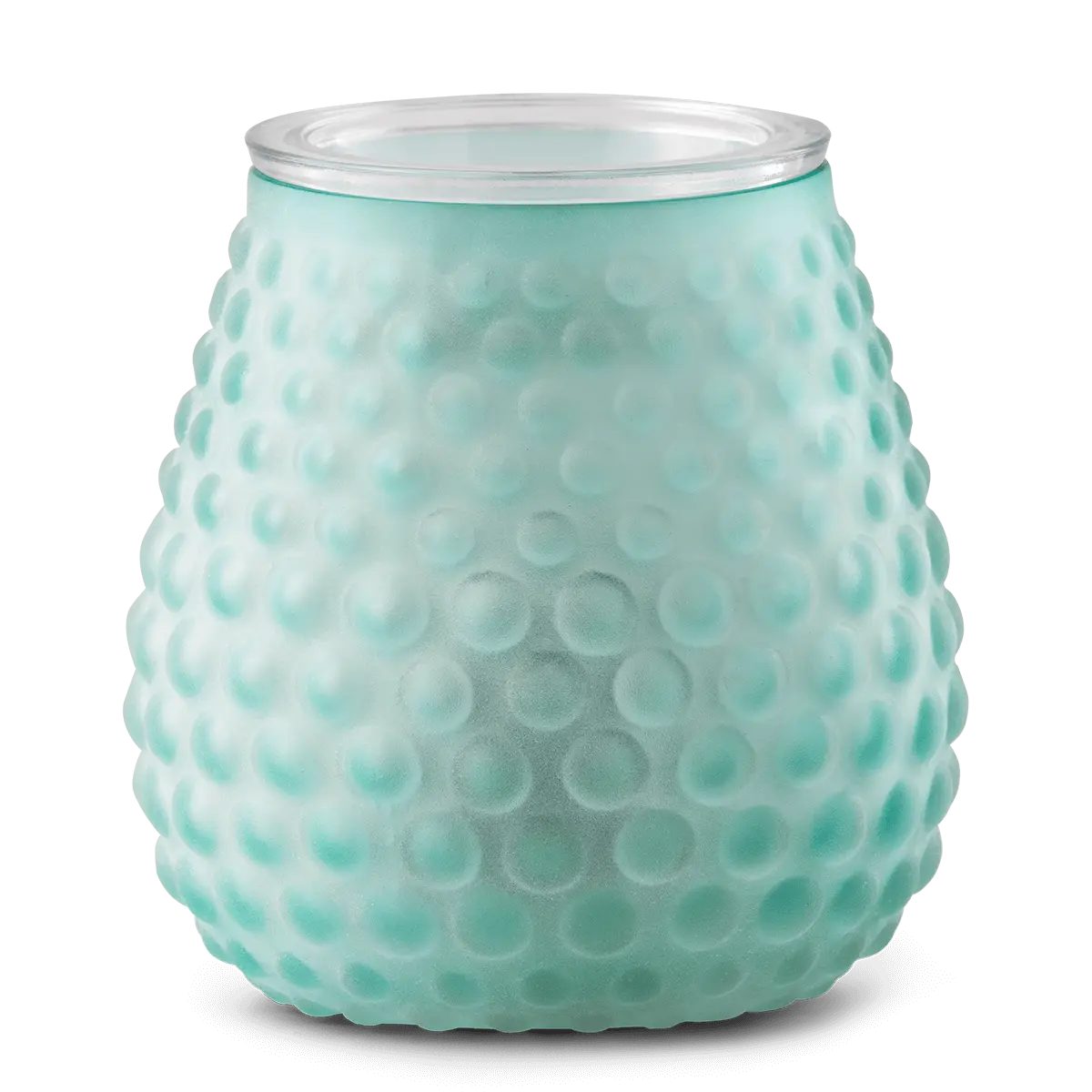 Inspired by vintage glass, this hand-blown Warmer is frosted with a satin blue finish that diffuses the light within when lit.