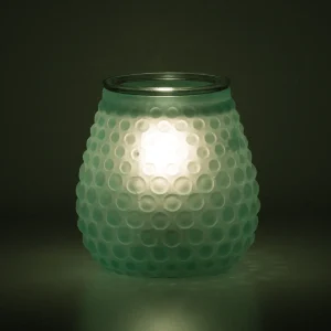 Inspired by vintage glass, this hand-blown Warmer is frosted with a satin blue finish that diffuses the light within when lit.