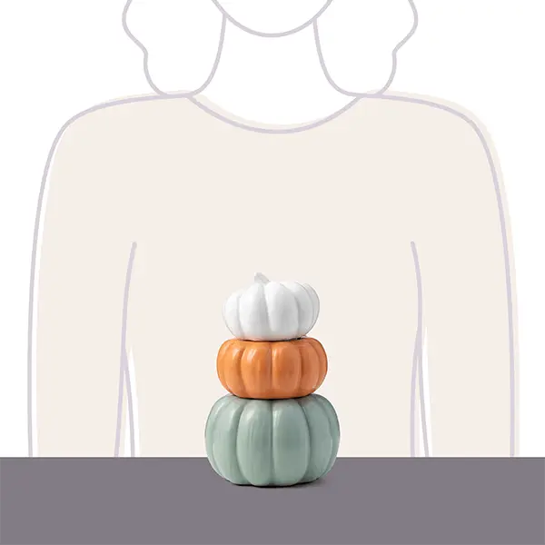 Shades of stacked pumpkins create a charming home décor piece to last the entire season.