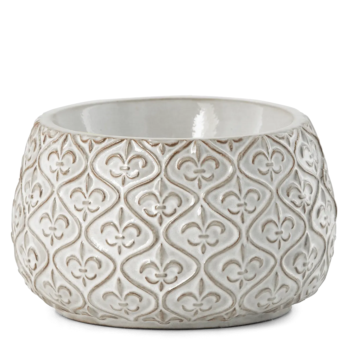 An embossed carving finished with a reactive glaze gives a hand-painted look. This modest Warmer fits with any décor — and makes a great gift!