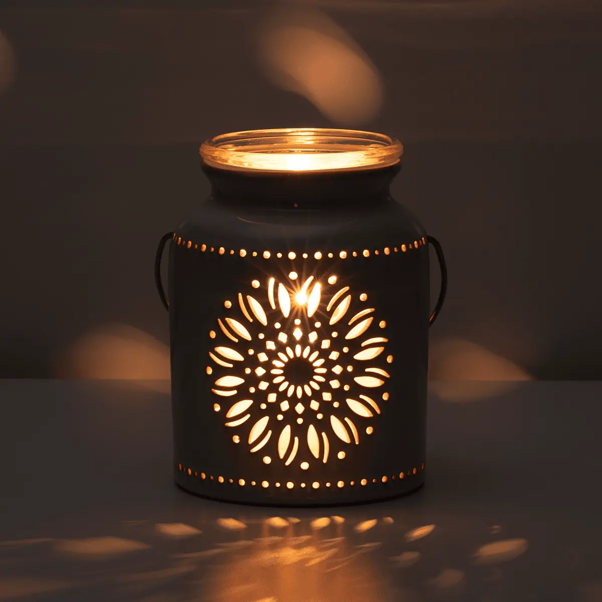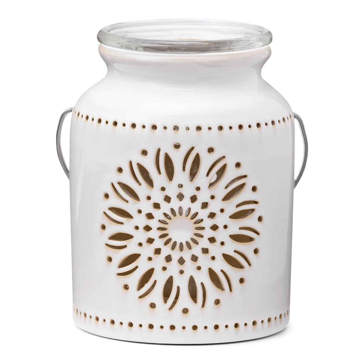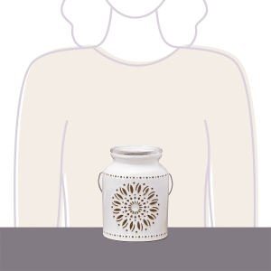 A radiant sunflower shines with warmth, highlighting a Warmer packed with rustic details — from the laser-cut design to a reactive glaze, and a decorative handle for a finishing touch.