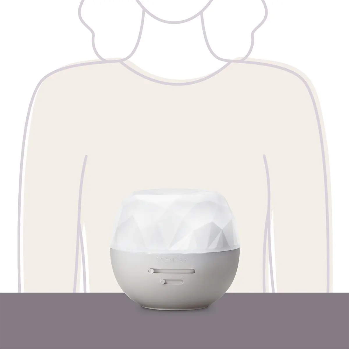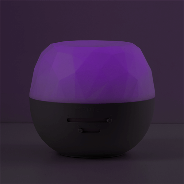 • Large, 450-mL reservoir provides up to 35 hours of fragrance when set on Low mode. • Sturdy construction and long-lasting fragrance minimize the fuss. • 8 light settings (including rainbow!) • Sliding controls make it easy to adjust and gauge the settings. • All Scentsy Diffusers come with a limited lifetime warranty.* *For diffuser warranty details, visit scentsy.com/shipping-warranty-return-information