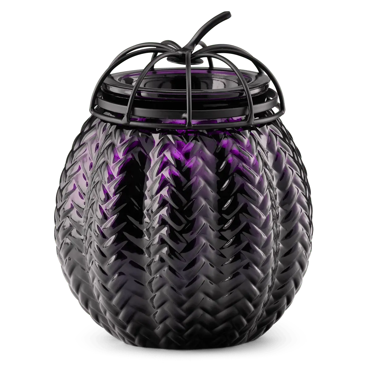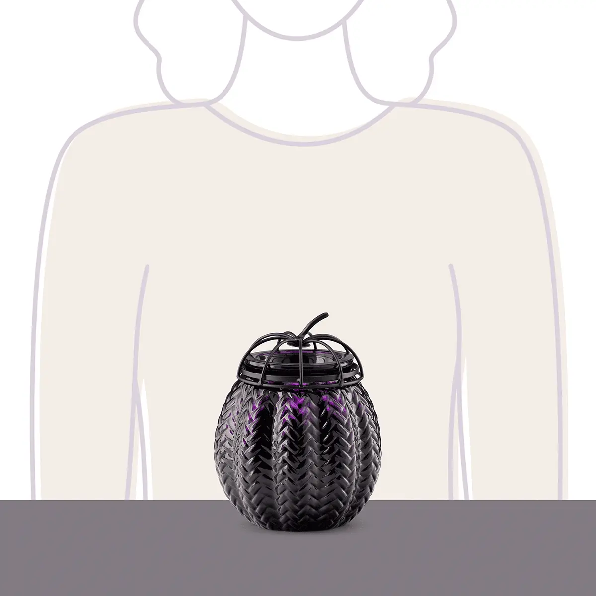 A mercury-glass effect sparkles like moonlight to exude a magical glow when this Warmer is lit.