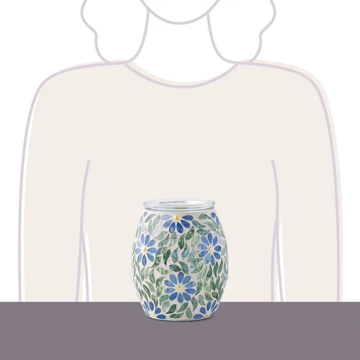 Spring flowers are always in bloom with this reflective mosaic. Transparent glass pieces are hand-cut and hand-placed, making each Warmer unique. Beautiful colorsshine on nearby surfaces when lit.